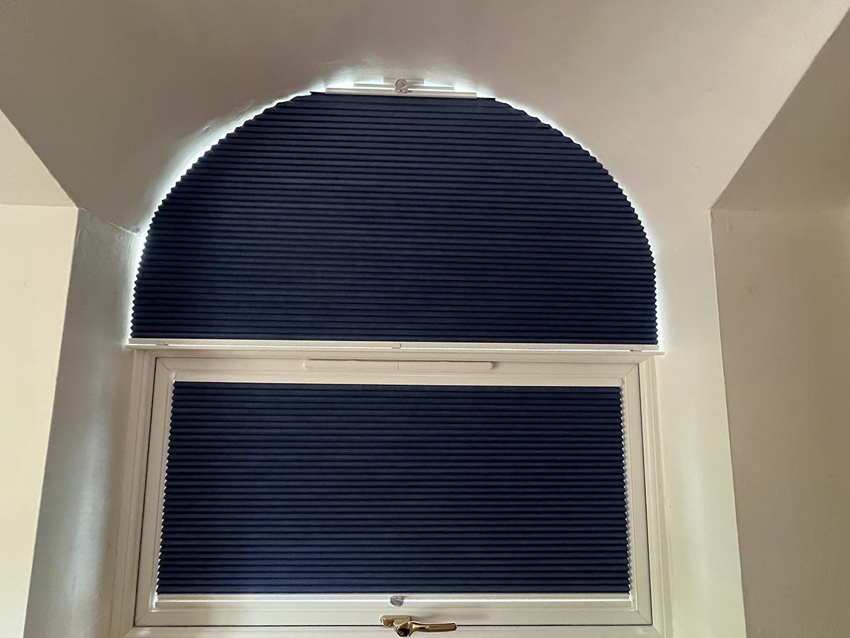 • Shaped Pleated Blinds: Crisp pleats that can be customised to fit arched windows perfectly. Available in a wide range of colours and patterns to match any decor.