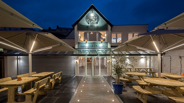 “ We run a busy redevelopment of a traditional Pub and modern restaurant, keeping historic and original features with additional modern facilities and tweaks relating to my family’s love of dragons. – The George & Dragon in Dartmouth Devon. We wanted to make our Boatroom Restaurant more comfortable and attractive to diners. It is a fabulous room with local artist’s works relating to the River Dart and historic Dart Harbour; just 200m away. However, the new and very attractive central Lanternlight windows, also allowed considerable heat build-up in Summer.
