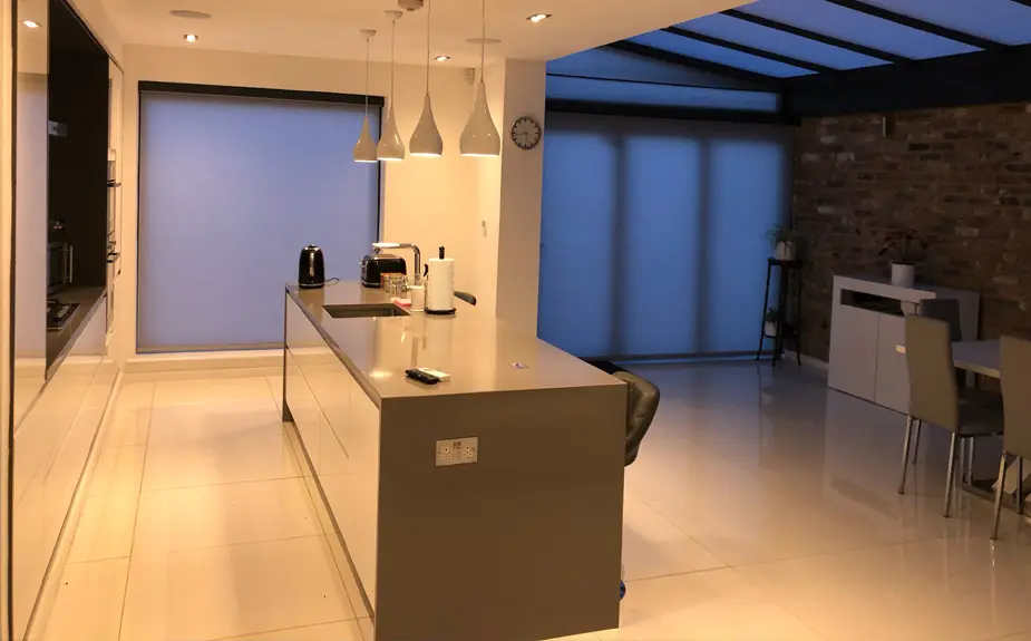 This customer recently left feedback for bespoke kitchen extension blinds on our Checkatrade page after having used the blinds throughout the end of the summer and into the autumn and winter; talking about how our blinds have made the room more comfortable, as well as praising our sales and installation teams: