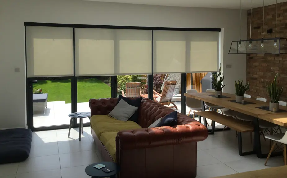 A large glazed area such as folding doors can be like having one wall of your house as a giant window. This is a great way to let in light and make the room feel spacious and airy. As with any other window, you will need the option to block out the view from time to time. Especially if the doors are part of a room that often gets used. For example, a living room or dining room. Because of the neat way we can recess fit blinds into the frame of each panel of a bi-fold door. Our blinds can easily help increase privacy for a large set of folding doors. The also have the luxury of looking like an integral part of the room. This is because they retract away neatly and do not take up too much space when not in use.