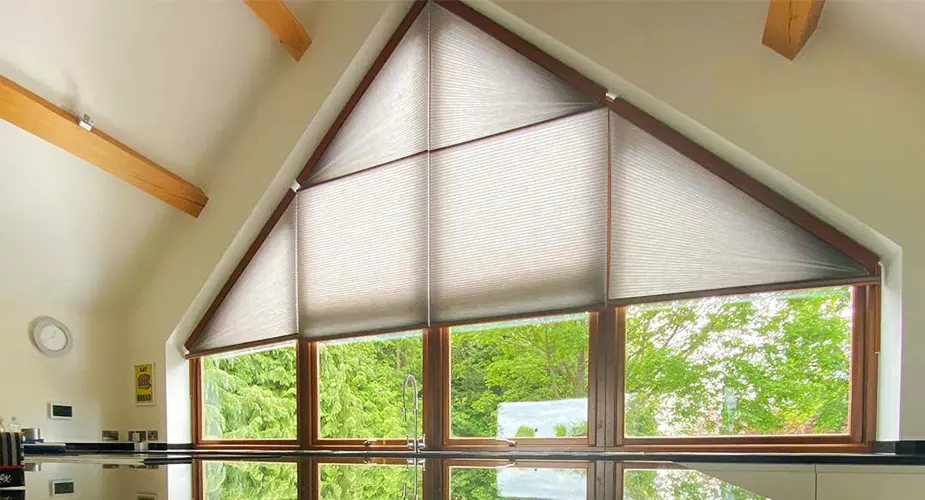 Our pureaspect™ technology means you can have gable blinds for large apex windows that retract away to almost nothing and cover large expanses of windows with just one or two blinds most of the time. Our Apex Window Blinds are specifically designed to fit any uniquely angled window.