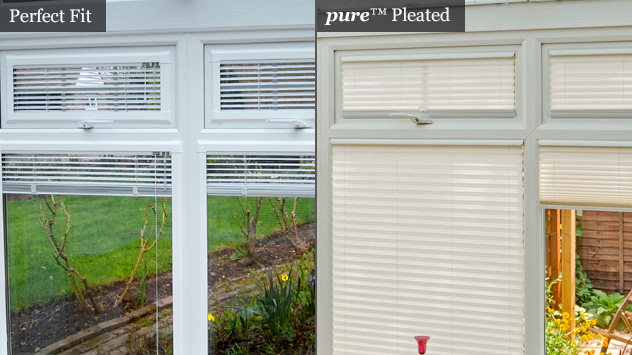 Prefect Fit blinds suffer from the fact that they are only generally designed to be used in standard shaped windows. Instead of being designed for conservatories! When compared to our pure™ conservatory blinds, which have been specifically designed to be used in conservatories. The limitations of Perfect Fit blinds are easier to see…