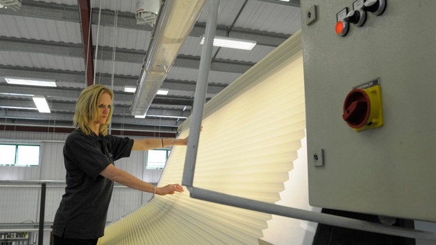 A lot of these quality control checks are possible because we have outfitted our factory with a lot of specialised equipment. specifically to make the type of bespoke blinds used in conservatories and orangeries. You can see more of the specialised equipment in our factory, as well as the wide range of blinds in our main showroom, in our factory tour video.