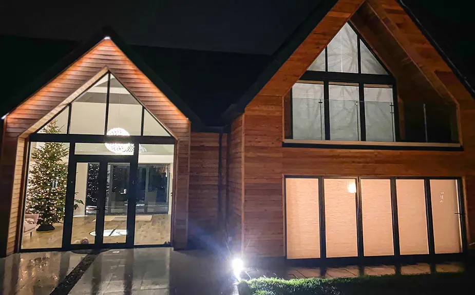 More Duette® Blinds were fitted in various windows and doors across the home, this time using SmartCord® operation. The SmartCord® cord retracts away when not in use, for a totally child-safe way of operating the blinds. Like the gable blinds, they offer increased privacy and heat control throughout the winter months; and will be there to keep the room cool during the summer. These blinds were essential for transforming the home into a more private and comfortable space over the Christmas holidays. If you have areas of glazing in your home like this, why not arrange a quotation with a member of our sales team? They can go through the various options with you to find a bespoke solution for you.