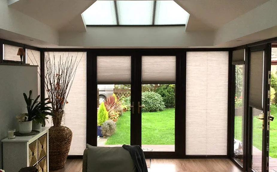 Semi-solid roofs are becoming a more popular option in modern conservatories and extensions. These roofs tend to be called hybrid conservatory roofs. They mix the light and airy atmosphere that comes with a traditional conservatory with increased privacy and insulation from the solid roof. However, as the roof does still have some elements of glazing, there are still problems with temperature control and glare. Because of this, we fit blinds into several semi-solid roofs to help the room be more comfortable throughout the year. This was the case with this recent installation in Northamptonshire. Transforming an extension with a semi-solid roof can be tricky. Yet, we fitted blinds into both the glazed areas of the roof, side windows and doors to transform the extension.